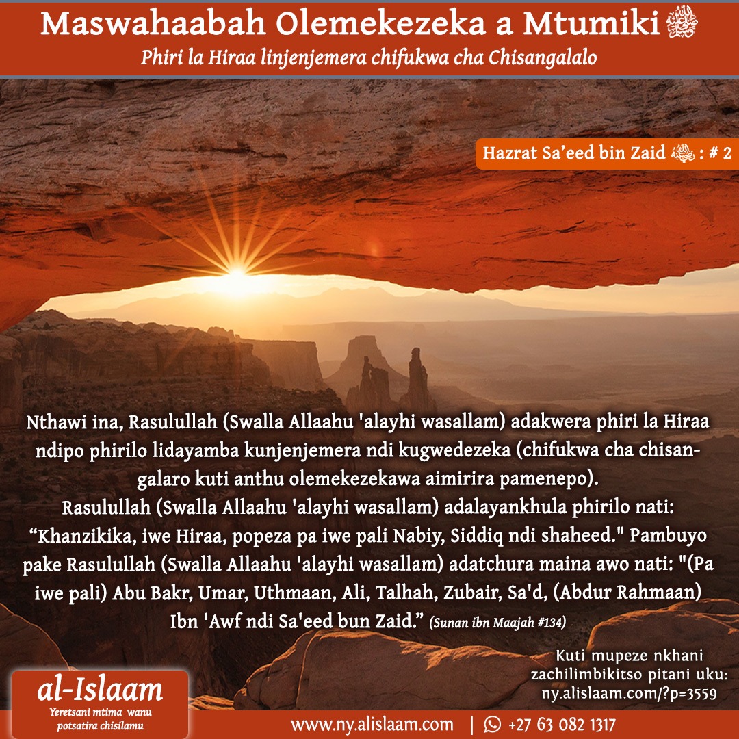 Muhammad bin Amr bun Hazm (Rahimahullah) anamuchenjeza kuti: “Usamukhumudwitse mnzake wa Mtumiki (Swalla Allaahu ‘alayh wasallam) (pomunamizira Hazrat Sa’iyd bin Zaid (Radhwiyallahu ‘anhu)) Si munthu amene angakupondereze kapena kukulanda ufulu”.