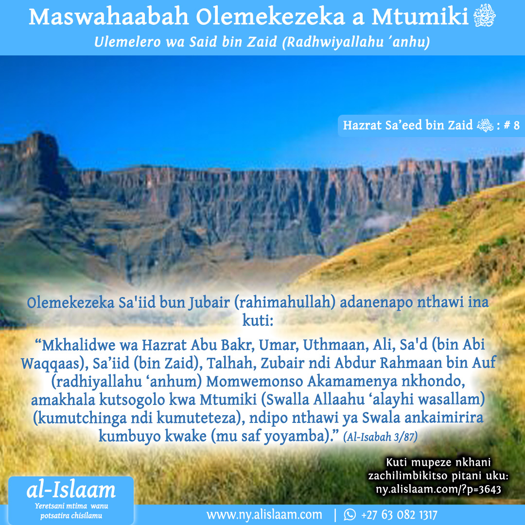 Tsiku lina Abdullah bin Umar (Radhwiyallahu ‘anhuma) akukonzekera kupita ku Swalaah, adamva kuti amalume ake, Sa’iid bin Zaid (radhiyallahu ‘anhu) akudwala kwambiri ndipo atha kumwalira.