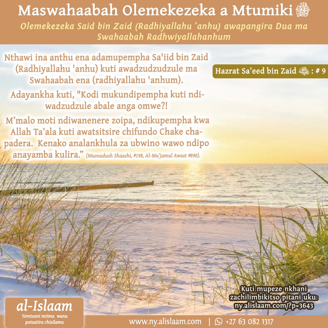 Olemekezeka Sa’iid bin Zaid (Radhwiya Allaahu ‘anhu) pokhudzika za ubwino wa Asilamu ndi nkhani ya khilaafah, adayankha nati: “Mwina ngati mutaunikira za munthu wina mwa Asilamu yemwe ali oyenera paudindowu wa ukhilafah, ndiye kuti anthu atha kumudalira pa u khalifa (ndipo angathe kumuika kukhala) pambuyo pake.” Adatinso kwa Umar (Radhwiyallahu ‘anhu) kuti Abu Bakr (Radhwiyallahu ‘anhu) adasankha khalifah asanamwalire ndipo anthu adadalira chisankho chake.
