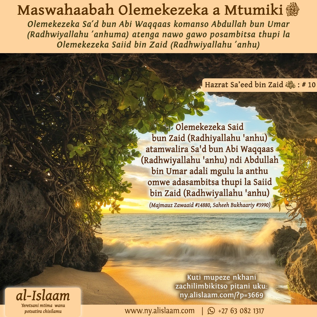 Olemekezeka Saiid bun Zaid (Radhwiyallahu ‘anhu) atamwalira, Hazrat Sa’d bun Abi Waqqaas (Radhiyallahu ‘anhu) ndi Hazrat Abdullah bun Umar (Radhwiyallahu ‘anhuma) adali m’gulu la anthu omwe adasambitsa thupi lake.