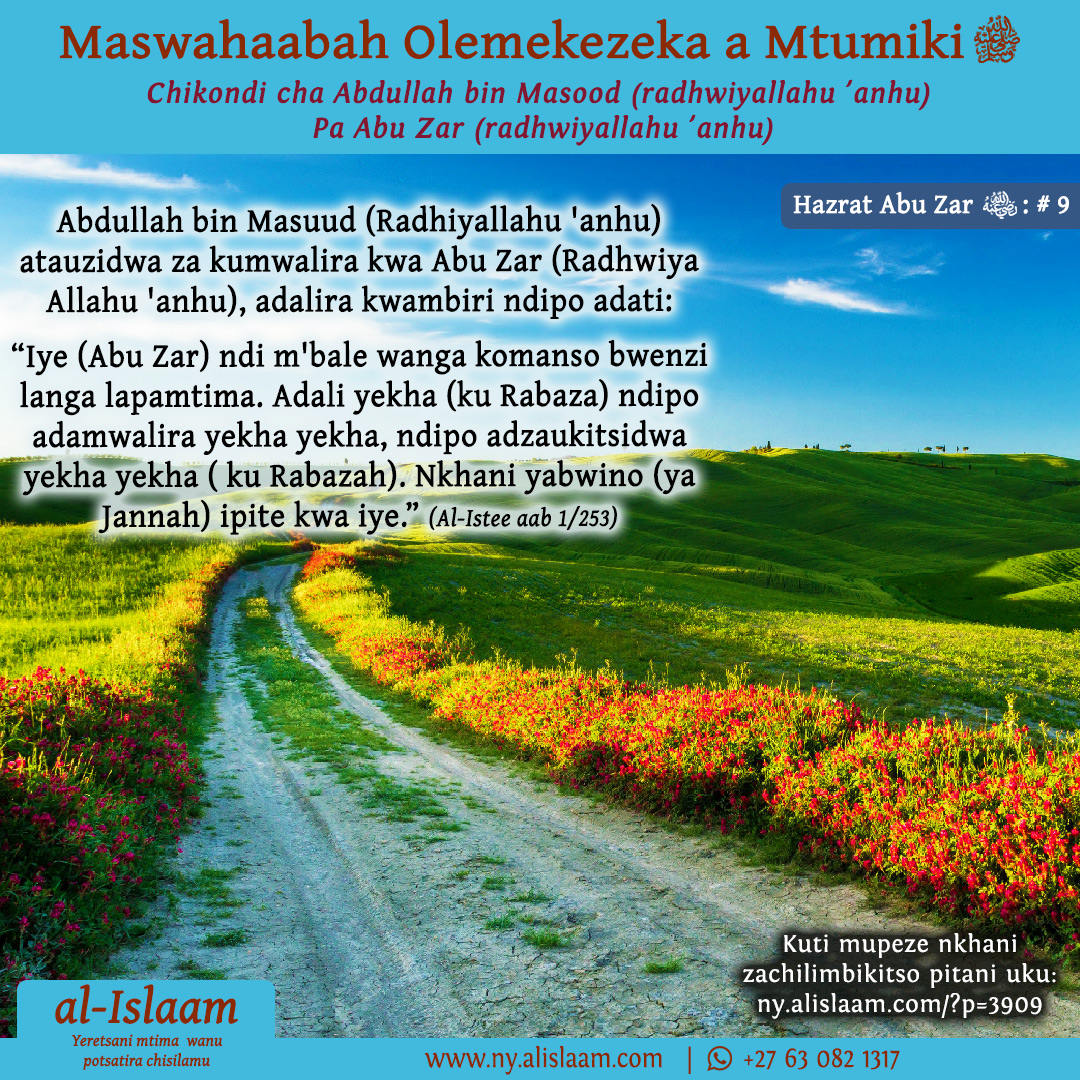 Atamva izi Abdullah Ibn Masood (Radhwiya Allahu ‘anhu) anayamba kulira nati: “Rasulullah (Swalla Allaahu ‘alayhi wa aalihi wa sallam) ananena zoona pamene adanena (Pa nkhondo ya Tabook) kuti, “E, Abu Zar! Wayenda wekha (kuti udzakhale nafe pa nkhondo ya Tabook), udzamwalira wekha ndipo udzaukitsidwa wekha.”
