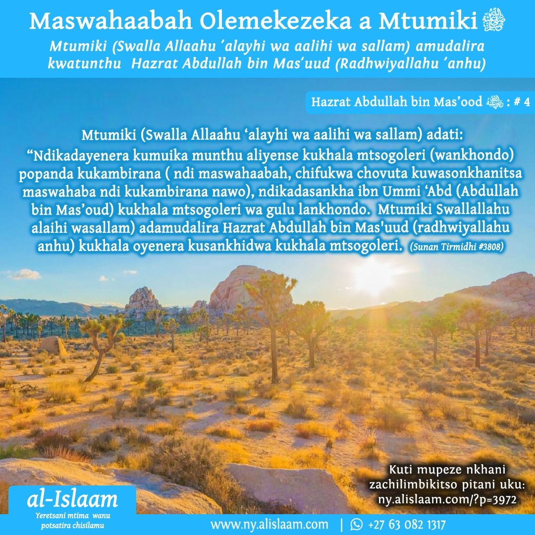 Hazrat Abdullah bin Mas’ood (radhwiyallahu ‘anhu) akufotokoza kuti: